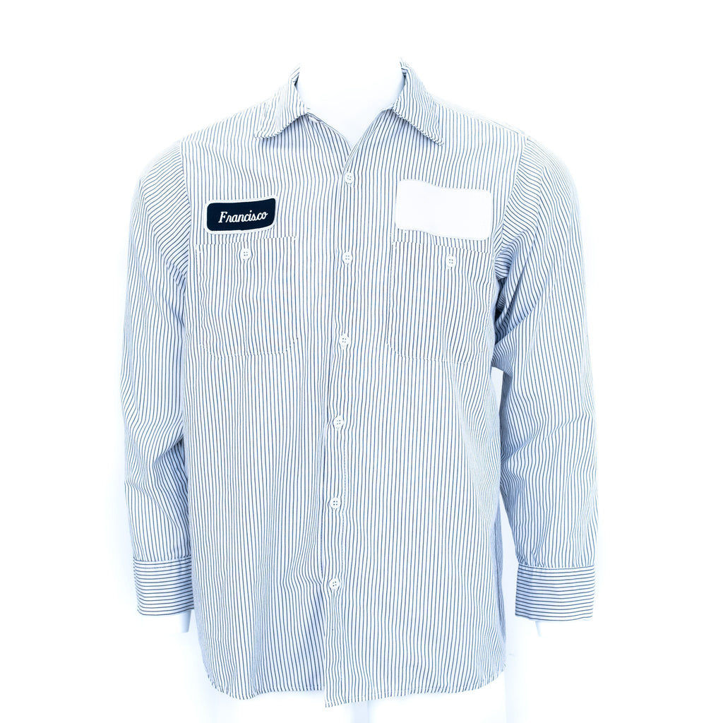 - Shirts MAY OR MAY NOT HAVE name tags or emblems. Company names have been removed and will leave residue or mark from removal.